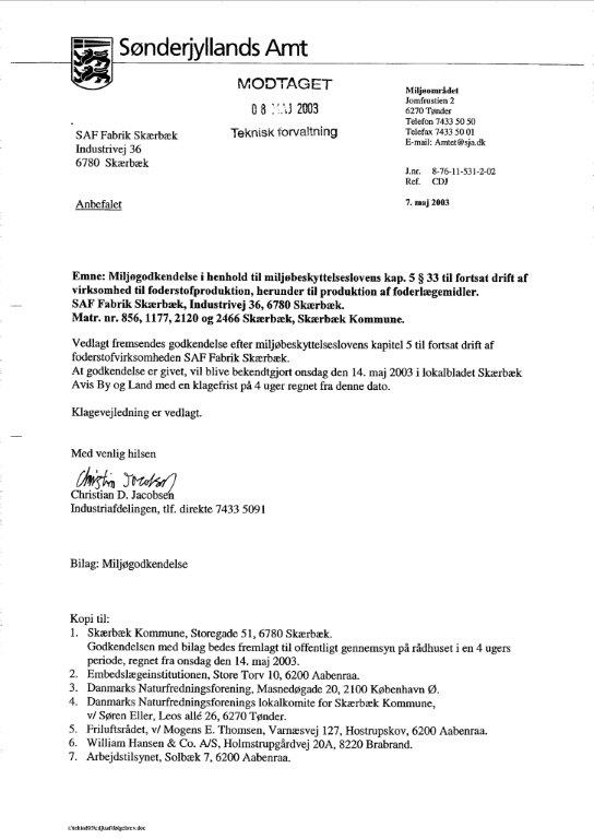 - Miljøgodkendelse til fortsat drift af virksomhed til foderproduktion
